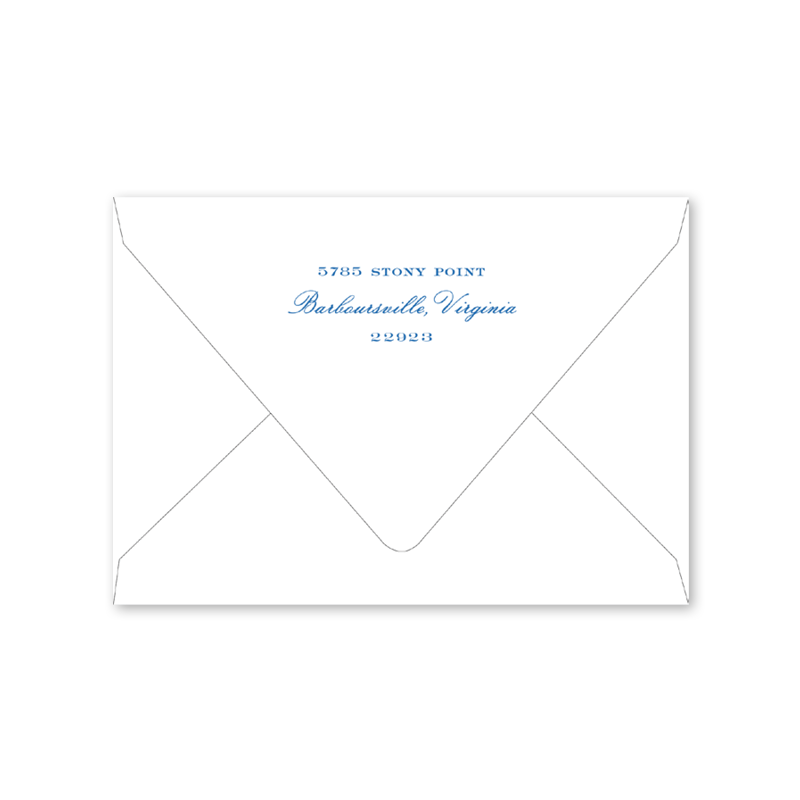 Enter your order quantity and check your total. Please enter your address EXACTLY like you want it printed on your envelope in the "Note" box below. Click Add to Cart. You will not receive a proof during the holidays (September 15 – December 31), unless your accompanying card requires a proof. If you do not include your address in the "Note" box or email it to Customer Service within 24 hours of placing your order, we will use your shipping address as the printed return address on your envelope.