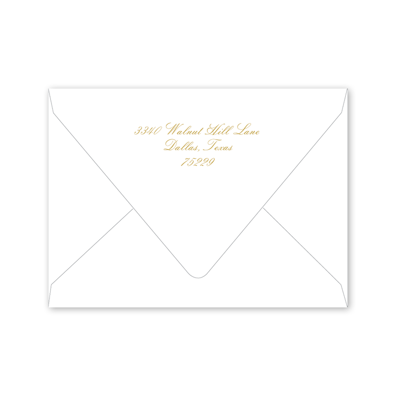 Enter your order quantity and check your total. Please enter your address EXACTLY like you want it printed on your envelope in the "Note" box below. Click Add to Cart. You will not receive a proof during the holidays (September 15 – December 31), unless your accompanying card requires a proof. If you do not include your address in the "Note" box or email it to Customer Service within 24 hours of placing your order, we will use your shipping address as the printed return address on your envelope.