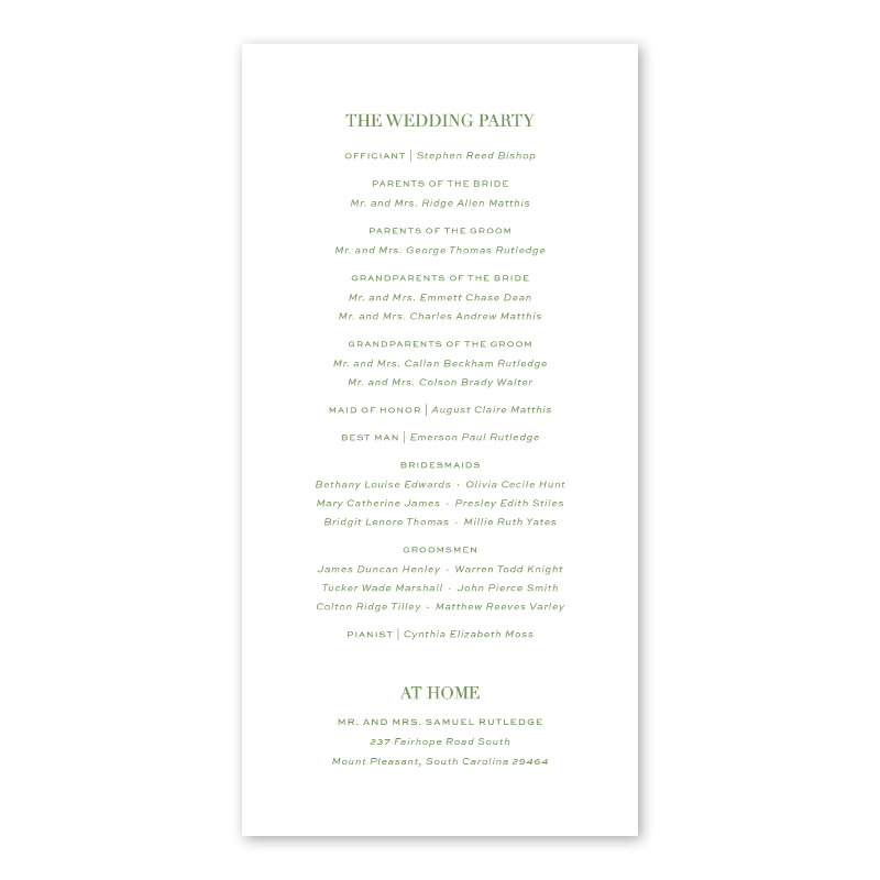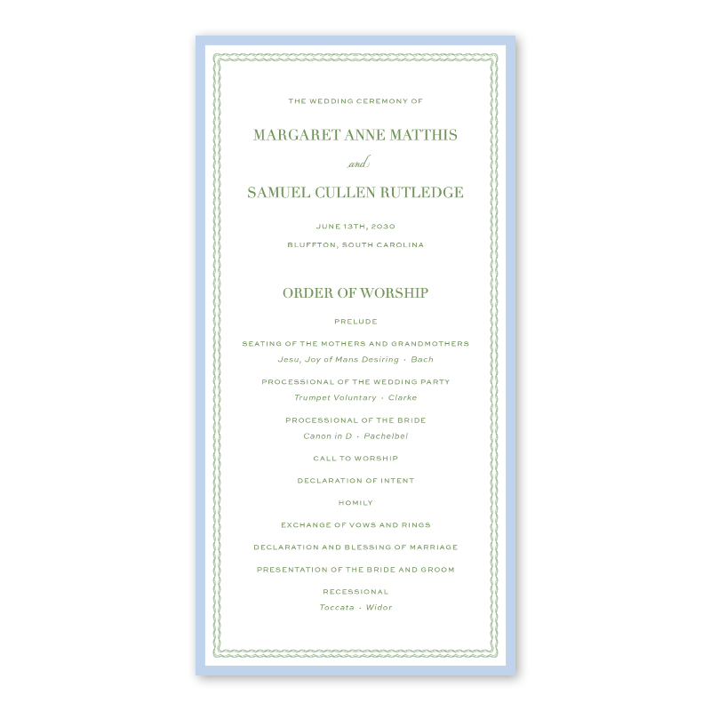 This program may be printed with both a front and back to ensure all your information is included.