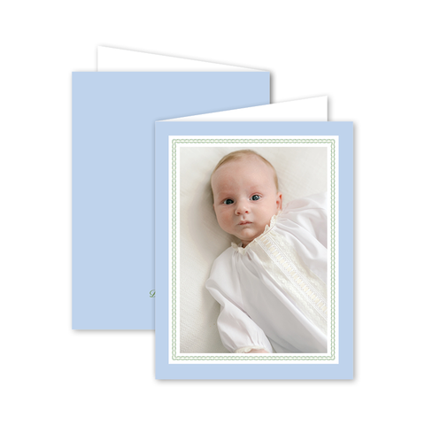 Christine's Hydrangeas Blue Folded Birth Announcement Recipient Address Printing