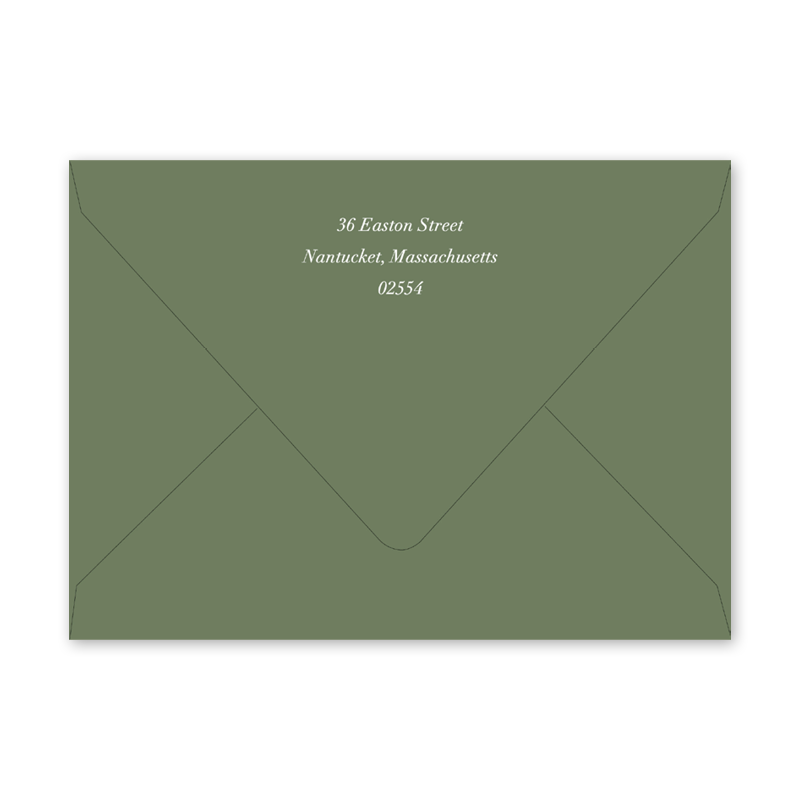 Enter your order quantity and check your total. Please enter your address EXACTLY like you want it printed on your envelope in the "Note" box below. Click Add to Cart. You will not receive a proof during the holidays (September 15 – December 31), unless your accompanying card requires a proof. If you do not include your address in the "Note" box or email it to Customer Service within 24 hours of placing your order, we will use your shipping address as the printed return address on your envelope. Enter your order quantity and check your total. Then click the Customize and Add to Cart button to enter your address and add the envelope to your cart. | /