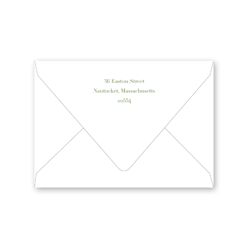 Enter your order quantity and check your total. Please enter your address EXACTLY like you want it printed on your envelope in the "Note" box below. Click Add to Cart. You will not receive a proof during the holidays (September 15 – December 31), unless your accompanying card requires a proof. If you do not include your address in the "Note" box or email it to Customer Service within 24 hours of placing your order, we will use your shipping address as the printed return address on your envelope.