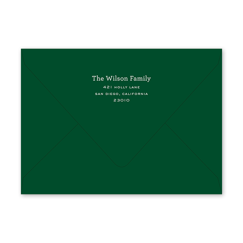 Enter your order quantity and check your total. Please enter your address EXACTLY like you want it printed on your envelope in the "Note" box below. Click Add to Cart. You will not receive a proof during the holidays (September 15 – December 31), unless your accompanying card requires a proof. If you do not include your address in the "Note" box or email it to Customer Service within 24 hours of placing your order, we will use your shipping address as the printed return address on your envelope. Enter your order quantity and check your total. Then click the Customize and Add to Cart button to enter your address and add the envelope to your cart. | /