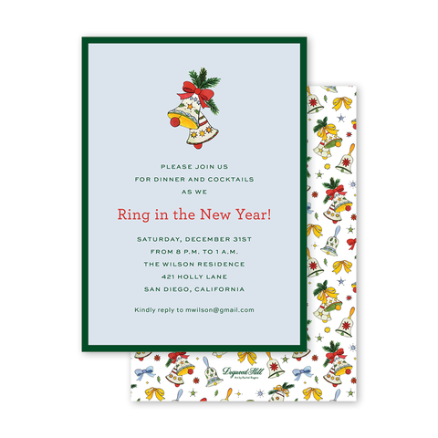 Christmas Bells New Years Invitation Green Envelopes