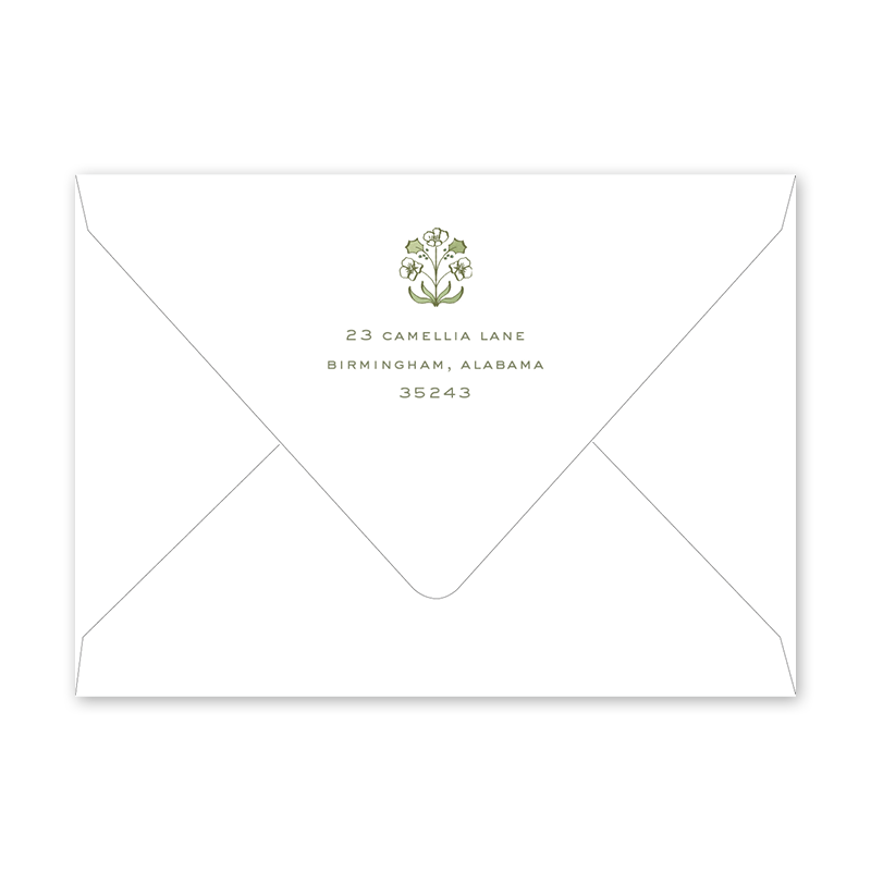 Christmas Camellias Green Invitation Envelopes
