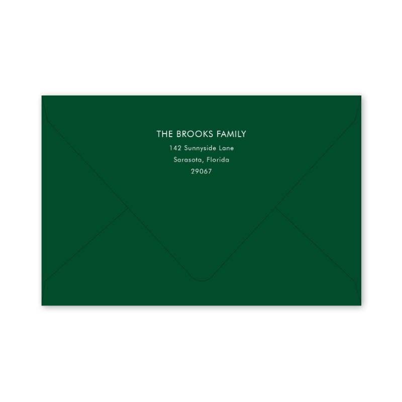 Enter your order quantity and check your total. Please enter your address EXACTLY like you want it printed on your envelope in the "Note" box below. Click Add to Cart. You will not receive a proof during the holidays (September 15 – December 31), unless your accompanying card requires a proof. If you do not include your address in the "Note" box or email it to Customer Service within 24 hours of placing your order, we will use your shipping address as the printed return address on your envelope. Enter your order quantity and check your total. Then click the Customize and Add to Cart button to enter your address and add the envelope to your cart. | /