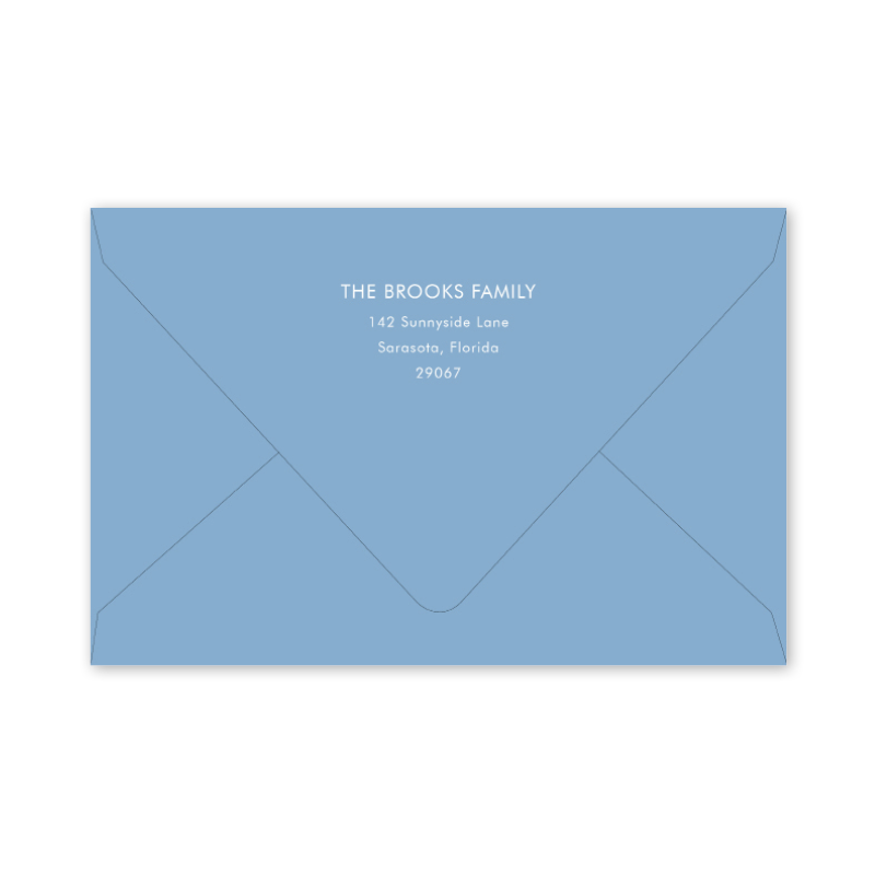 Enter your order quantity and check your total. Please enter your address EXACTLY like you want it printed on your envelope in the "Note" box below. Click Add to Cart. You will not receive a proof during the holidays (September 15 – December 31), unless your accompanying card requires a proof. If you do not include your address in the "Note" box or email it to Customer Service within 24 hours of placing your order, we will use your shipping address as the printed return address on your envelope. Enter your order quantity and check your total. Then click the Customize and Add to Cart button to enter your address and add the envelope to your cart. | /