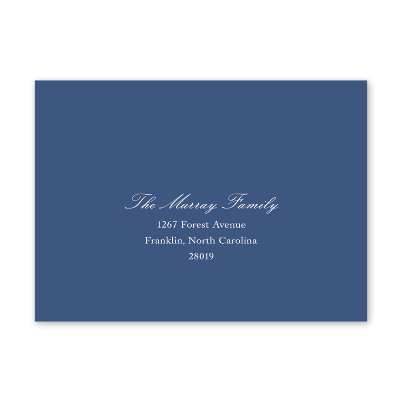 Enter your order quantity and check your total. Please enter your address EXACTLY like you want it printed on your envelope in the "Note" box below. Click Add to Cart. You will not receive a proof during the holidays (September 15 – December 31), unless your accompanying card requires a proof. If you do not include your address in the "Note" box or email it to Customer Service within 24 hours of placing your order, we will use your shipping address as the printed return address on your envelope. Enter your order quantity and check your total. Then click the Customize and Add to Cart button to enter your address and add the envelope to your cart. | /