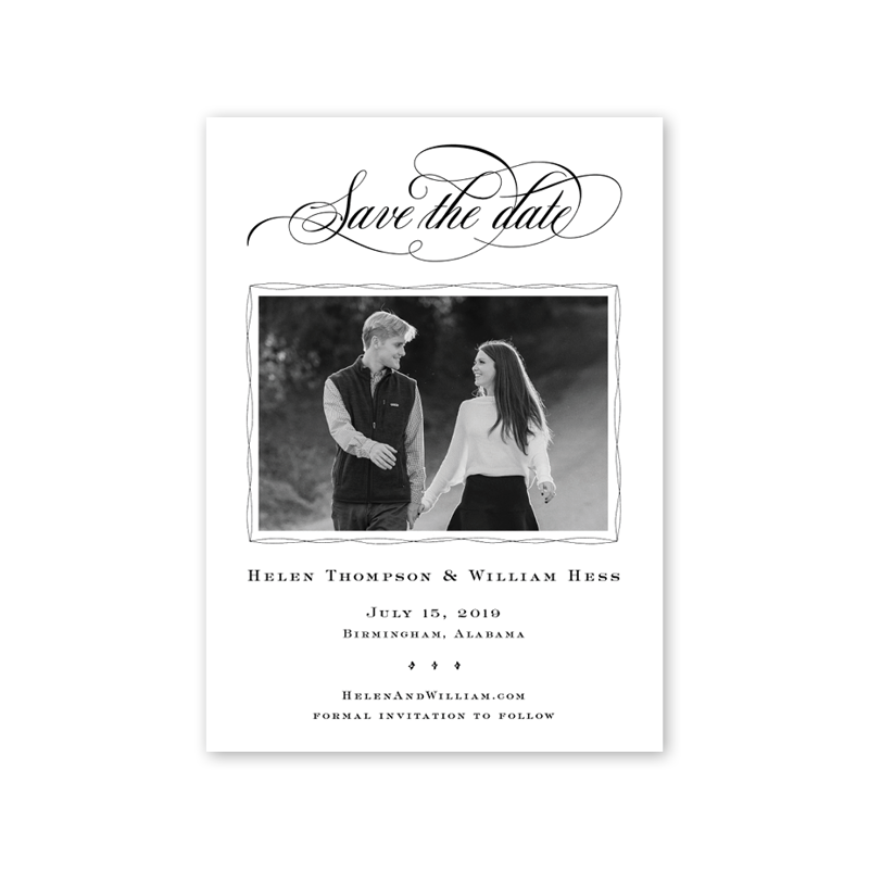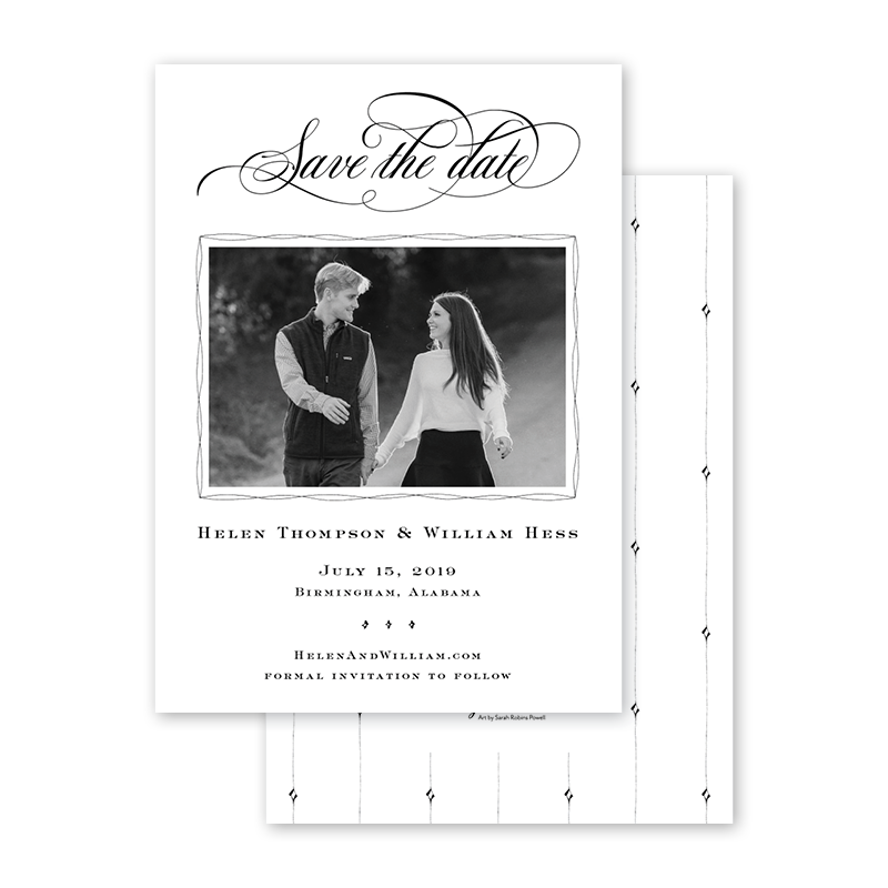 Select your order quantity from the dropdown menu below and check your total. Enter the text for your Save the Date in the “Note” box below. Click Add to Cart. Your wording does not have to match the sample product wording and can be customized for your Save the Date. You will receive a proof notification via email and text message within 3 to 5 business days.If your Save the Date includes a photo, please email a high resolution image along with your order number to weddings@dogwood-hill.com.