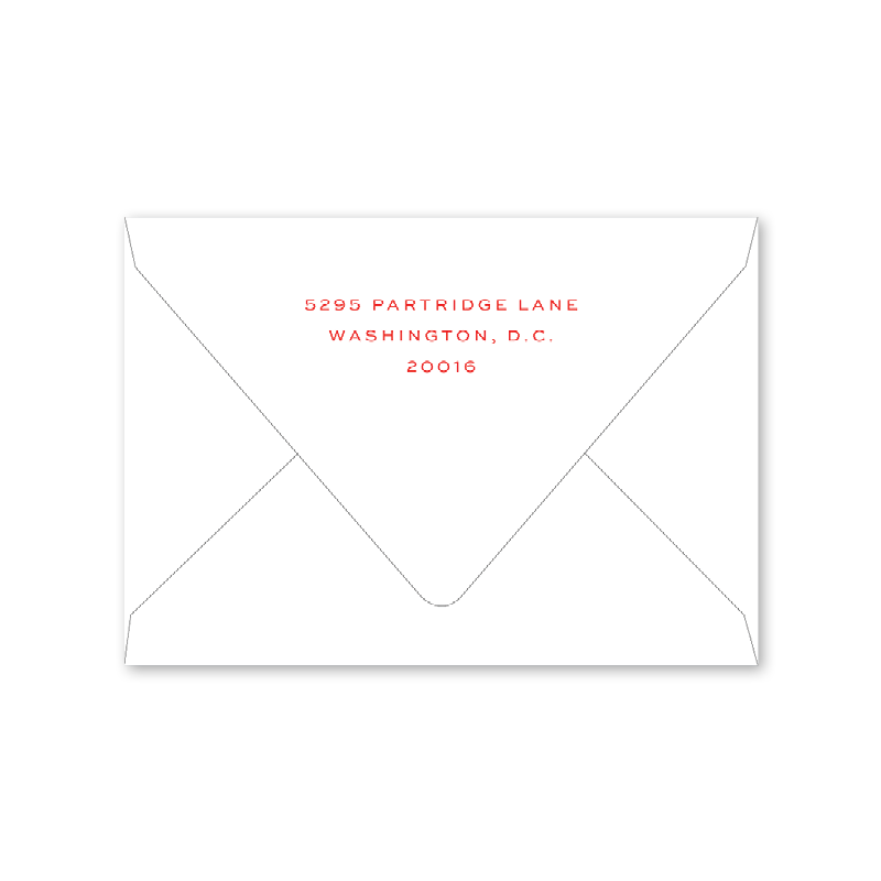 Enter your order quantity and check your total. Please enter your address EXACTLY like you want it printed on your envelope in the "Note" box below. Click Add to Cart. You will not receive a proof during the holidays (September 15 – December 31), unless your accompanying card requires a proof. If you do not include your address in the "Note" box or email it to Customer Service within 24 hours of placing your order, we will use your shipping address as the printed return address on your envelope.