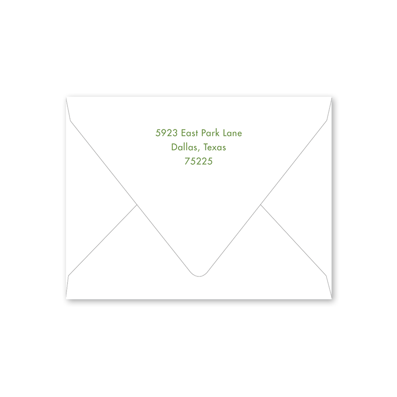 Enter your order quantity and check your total. Please enter your address EXACTLY like you want it printed on your envelope in the "Note" box below. Click Add to Cart. You will not receive a proof during the holidays (September 15 – December 31), unless your accompanying card requires a proof. If you do not include your address in the "Note" box or email it to Customer Service within 24 hours of placing your order, we will use your shipping address as the printed return address on your envelope.