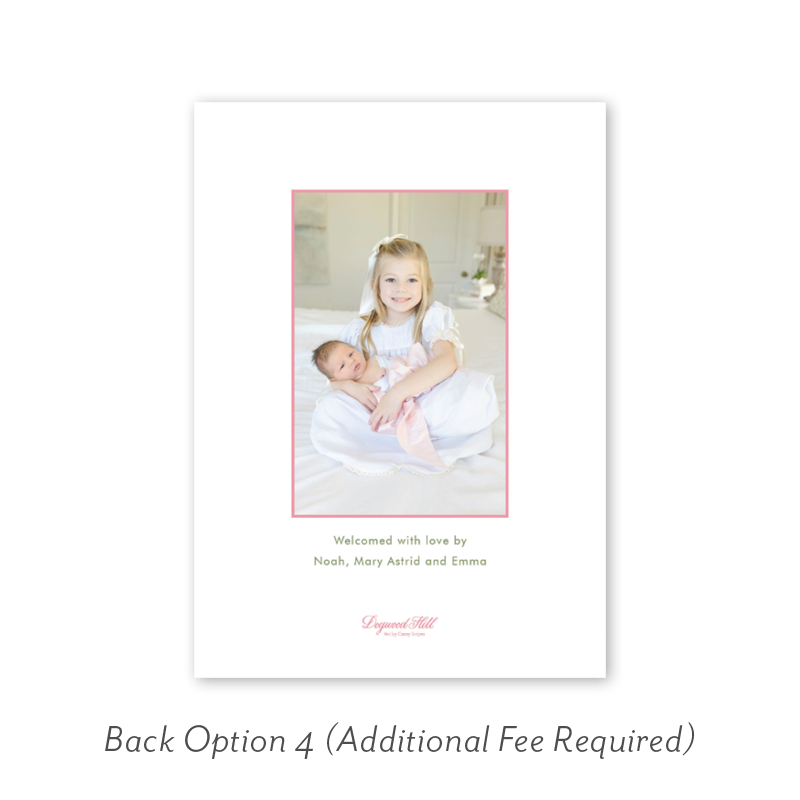 Want to add up to 4 photos on the back or inside of your card? Click here to add the fee to your cart.
