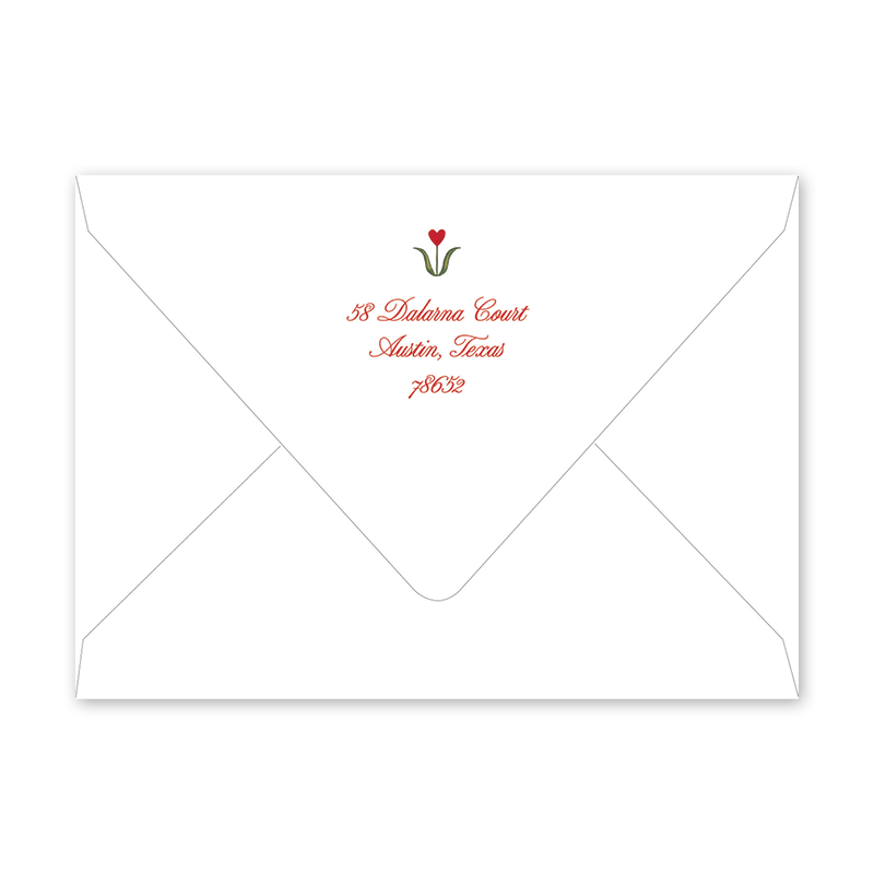 Enter your order quantity and check your total. Please enter your address EXACTLY like you want it printed on your envelope in the "Note" box below. Click Add to Cart. You will not receive a proof during the holidays (September 15 – December 31), unless your accompanying card requires a proof. If you do not include your address in the "Note" box or email it to Customer Service within 24 hours of placing your order, we will use your shipping address as the printed return address on your envelope.
