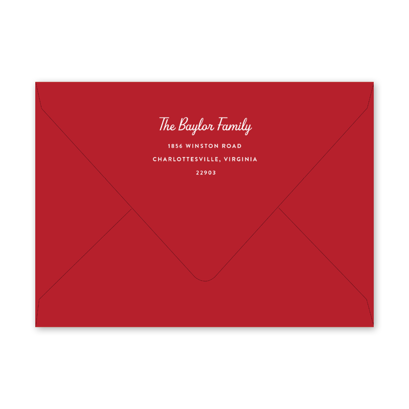 Enter your order quantity and check your total. Please enter your address EXACTLY like you want it printed on your envelope in the "Note" box below. Click Add to Cart. You will not receive a proof during the holidays (September 15 – December 31), unless your accompanying card requires a proof. If you do not include your address in the "Note" box or email it to Customer Service within 24 hours of placing your order, we will use your shipping address as the printed return address on your envelope.  |  /