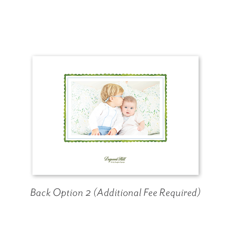 Select your order quantity from the dropdown menu below and check your total. Then click the Customize and Add to Cart button to create your card and add it to your cart.Want to add up to 4 photos on the back or inside of your card? Click here to add the fee to your cart.