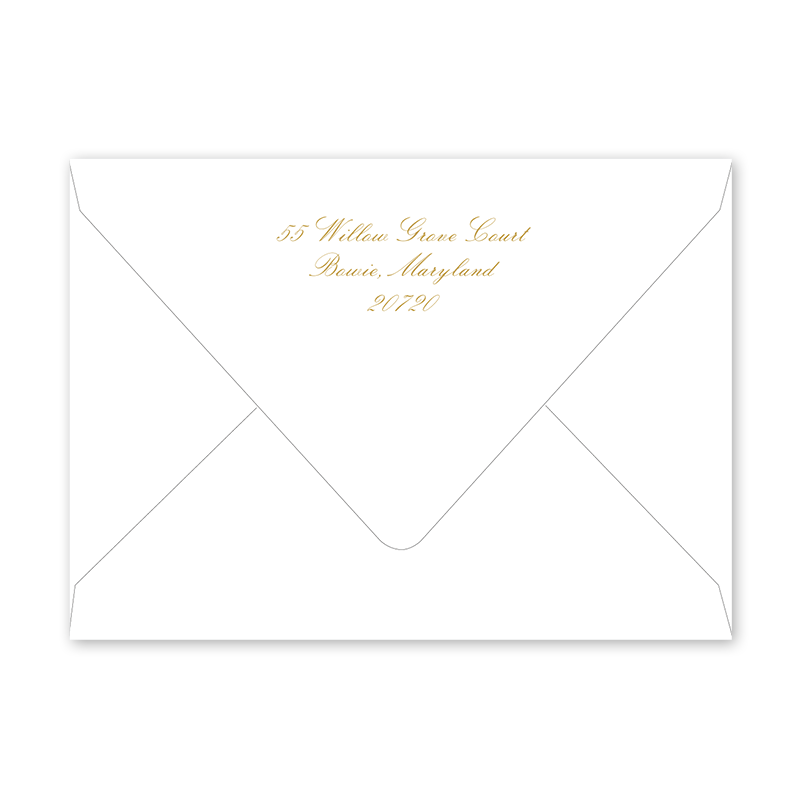 Enter your order quantity and check your total. Please enter your address EXACTLY like you want it printed on your envelope in the "Note" box below. Click Add to Cart. You will not receive a proof during the holidays (September 15 – December 31), unless your accompanying card requires a proof. If you do not include your address in the "Note" box or email it to Customer Service within 24 hours of placing your order, we will use your shipping address as the printed return address on your envelope.