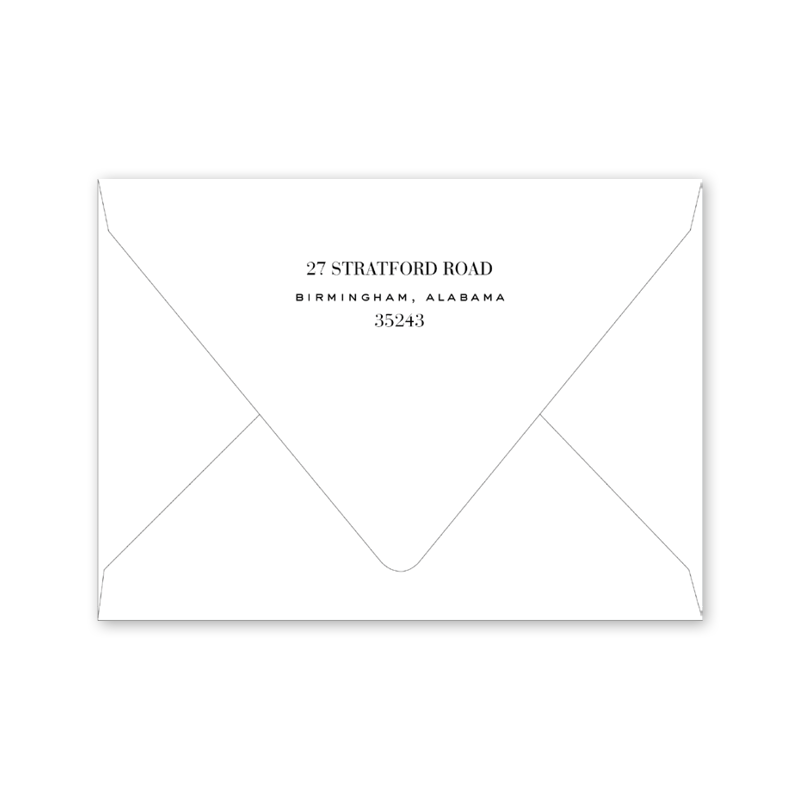 Enter your order quantity and check your total. Please enter your address EXACTLY like you want it printed on your envelope in the "Note" box below. Click Add to Cart. You will not receive a proof during the holidays (September 15 – December 31), unless your accompanying card requires a proof. If you do not include your address in the "Note" box or email it to Customer Service within 24 hours of placing your order, we will use your shipping address as the printed return address on your envelope.