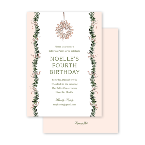 En Pointe Shoe Wreath Invitation Green Liner