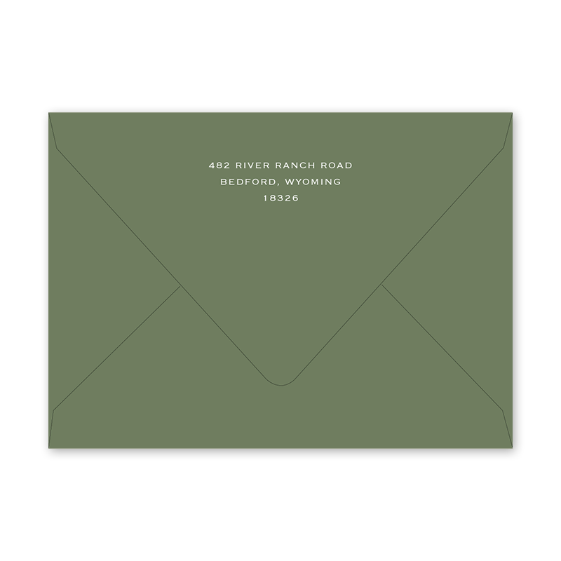 Enter your order quantity and check your total. Please enter your address EXACTLY like you want it printed on your envelope in the "Note" box below. Click Add to Cart. You will not receive a proof during the holidays (September 15 – December 31), unless your accompanying card requires a proof. If you do not include your address in the "Note" box or email it to Customer Service within 24 hours of placing your order, we will use your shipping address as the printed return address on your envelope. Enter your order quantity and check your total. Then click the Customize and Add to Cart button to enter your address and add the envelope to your cart. | /