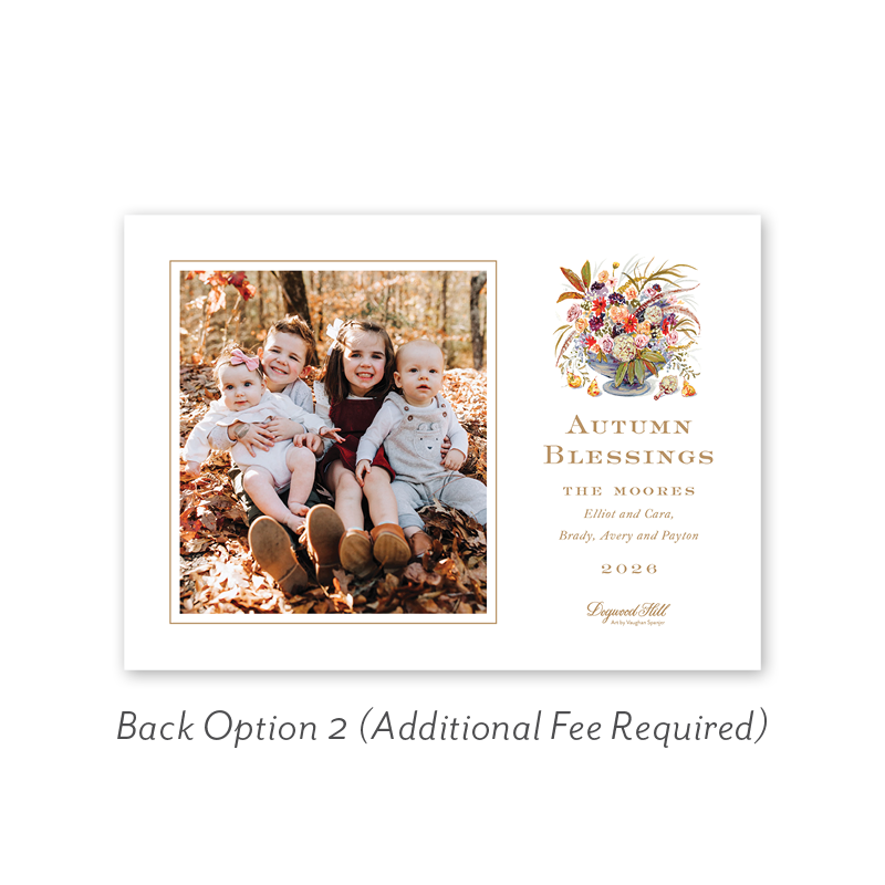 Want to add up to 4 photos on the back or inside of your card? Click here to add the fee to your cart.