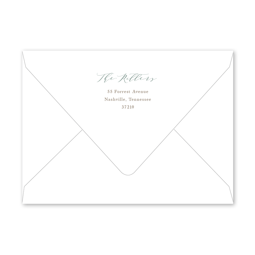 Enter your order quantity and check your total. Please enter your address EXACTLY like you want it printed on your envelope in the "Note" box below. Click Add to Cart. You will not receive a proof during the holidays (September 15 – December 31), unless your accompanying card requires a proof. If you do not include your address in the "Note" box or email it to Customer Service within 24 hours of placing your order, we will use your shipping address as the printed return address on your envelope.