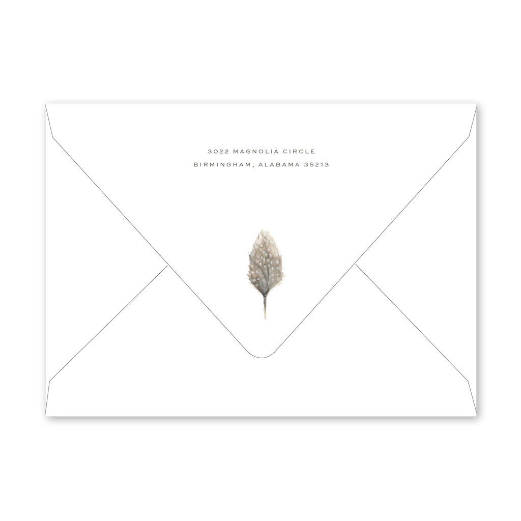 Enter your order quantity and check your total. Please enter your address EXACTLY like you want it printed on your envelope in the "Note" box below. Click Add to Cart. You will not receive a proof during the holidays (September 15 – December 31), unless your accompanying card requires a proof. If you do not include your address in the "Note" box or email it to Customer Service within 24 hours of placing your order, we will use your shipping address as the printed return address on your envelope.
