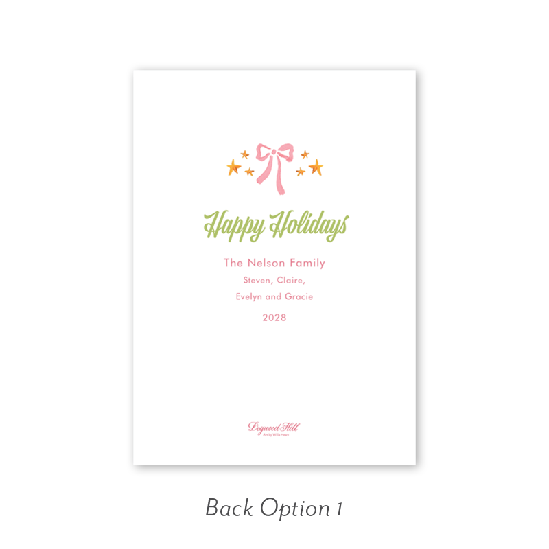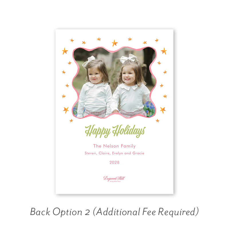Want to add up to 4 photos on the back or inside of your card? Click here to add the fee to your cart.