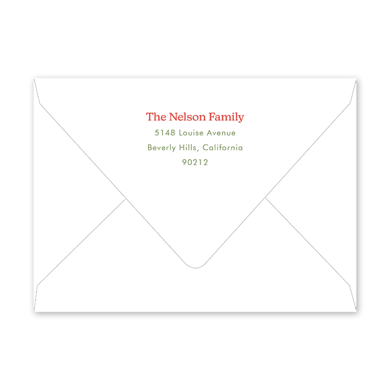 Enter your order quantity and check your total. Please enter your address EXACTLY like you want it printed on your envelope in the "Note" box below. Click Add to Cart. You will not receive a proof during the holidays (September 15 – December 31), unless your accompanying card requires a proof. If you do not include your address in the "Note" box or email it to Customer Service within 24 hours of placing your order, we will use your shipping address as the printed return address on your envelope.