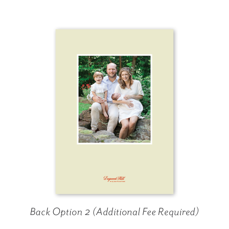 Select your order quantity from the dropdown menu below and check your total. Then click the Customize and Add to Cart button to create your card and add it to your cart.Want to add up to 4 photos on the back or inside of your card? Click here to add the fee to your cart.