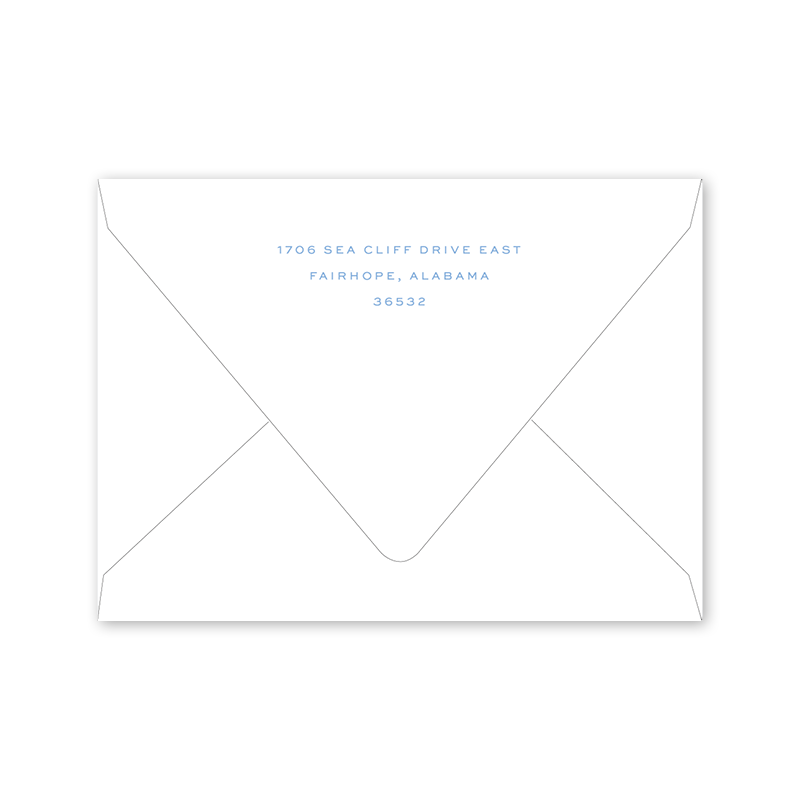 Enter your order quantity and check your total. Please enter your address EXACTLY like you want it printed on your envelope in the "Note" box below. Click Add to Cart. You will not receive a proof during the holidays (September 15 – December 31), unless your accompanying card requires a proof. If you do not include your address in the "Note" box or email it to Customer Service within 24 hours of placing your order, we will use your shipping address as the printed return address on your envelope.