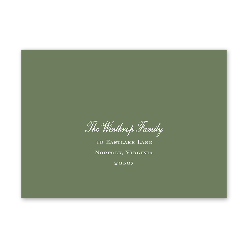 Enter your order quantity and check your total. Please enter your address EXACTLY like you want it printed on your envelope in the "Note" box below. Click Add to Cart. You will not receive a proof during the holidays (September 15 – December 31), unless your accompanying card requires a proof. If you do not include your address in the "Note" box or email it to Customer Service within 24 hours of placing your order, we will use your shipping address as the printed return address on your envelope. Enter your order quantity and check your total. Then click the Customize and Add to Cart button to enter your address and add the envelope to your cart. | /