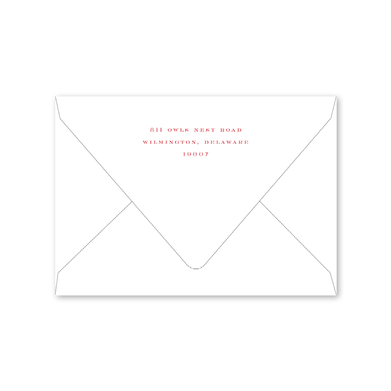 Enter your order quantity and check your total. Please enter your address EXACTLY like you want it printed on your envelope in the "Note" box below. Click Add to Cart. You will not receive a proof during the holidays (September 15 – December 31), unless your accompanying card requires a proof. If you do not include your address in the "Note" box or email it to Customer Service within 24 hours of placing your order, we will use your shipping address as the printed return address on your envelope.