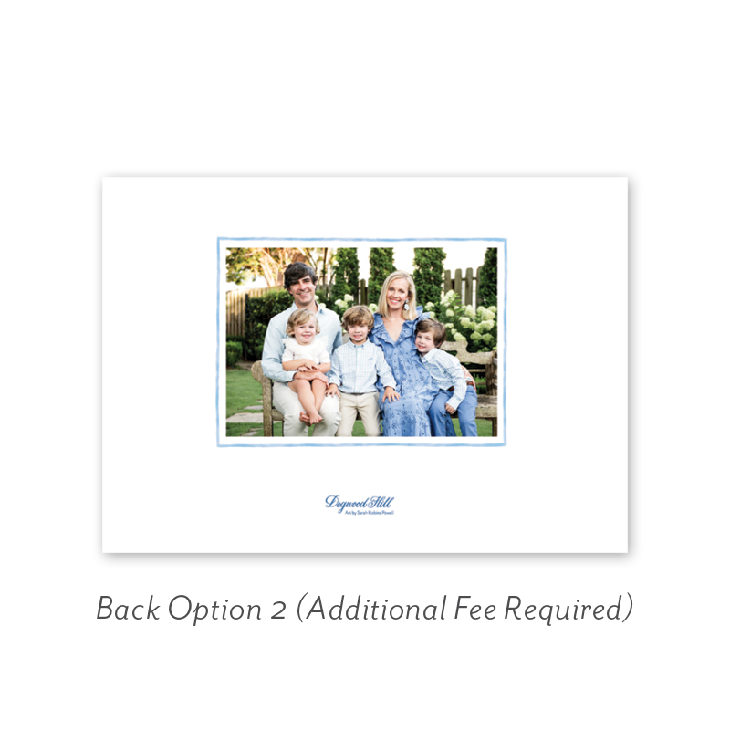 Select your order quantity from the dropdown menu below and check your total. Then click the Customize and Add to Cart button to create your card and add it to your cart.Want to add up to 4 photos on the back or inside of your card? Click here to add the fee to your cart.