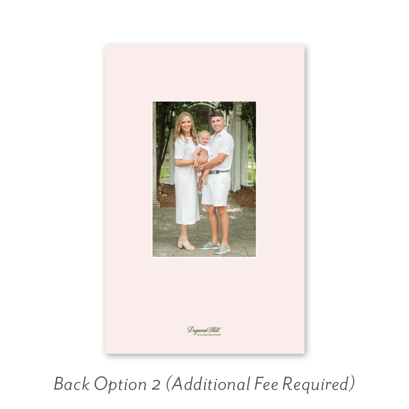 Select your order quantity from the dropdown menu below and check your total. Then click the Customize and Add to Cart button to create your card and add it to your cart.Want to add up to 4 photos on the back or inside of your card? Click here to add the fee to your cart.