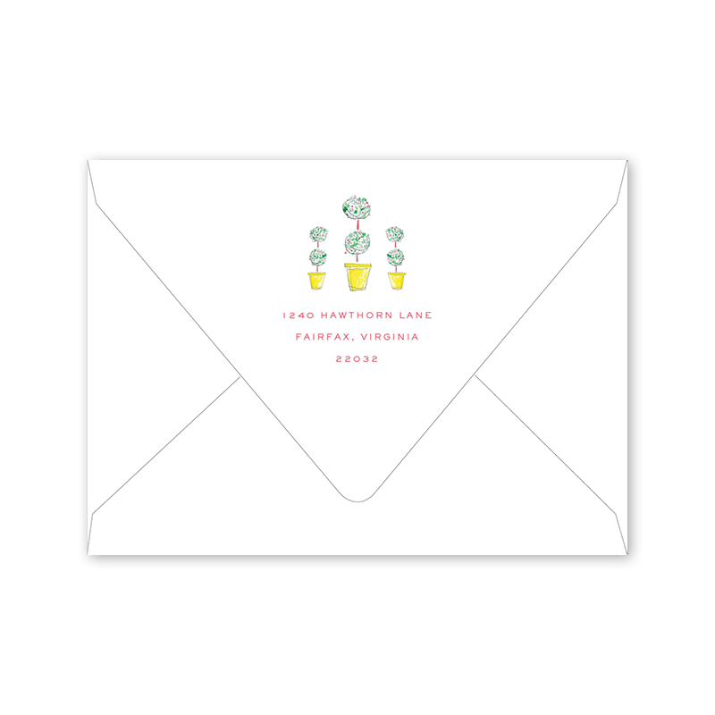 Enter your order quantity and check your total. Please enter your address EXACTLY like you want it printed on your envelope in the "Note" box below. Click Add to Cart. You will not receive a proof during the holidays (September 15 – December 31), unless your accompanying card requires a proof. If you do not include your address in the "Note" box or email it to Customer Service within 24 hours of placing your order, we will use your shipping address as the printed return address on your envelope.
