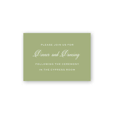 Each invitation comes with a blank inner and outer envelope and return address printing on the outer envelope flap. Envelope liner and recipient address printing for each envelope may be purchased for an additional cost on the main collection page.
