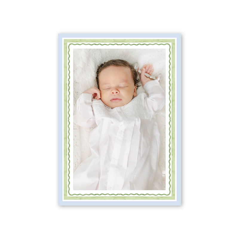Garden Park Blue Border Birth Announcement