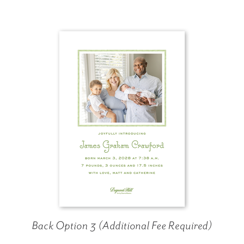 Want to add up to 4 photos on the back or inside of your card? Click here to add the fee to your cart.