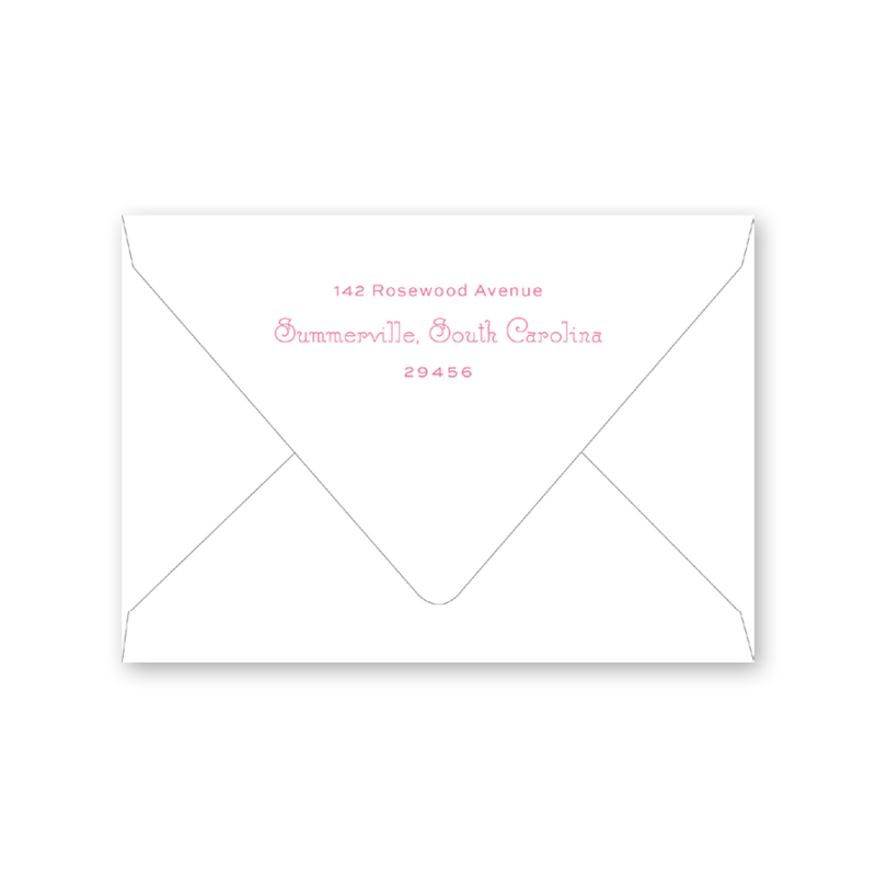 Enter your order quantity and check your total. Please enter your address EXACTLY like you want it printed on your envelope in the "Note" box below. Click Add to Cart. You will not receive a proof during the holidays (September 15 – December 31), unless your accompanying card requires a proof. If you do not include your address in the "Note" box or email it to Customer Service within 24 hours of placing your order, we will use your shipping address as the printed return address on your envelope.