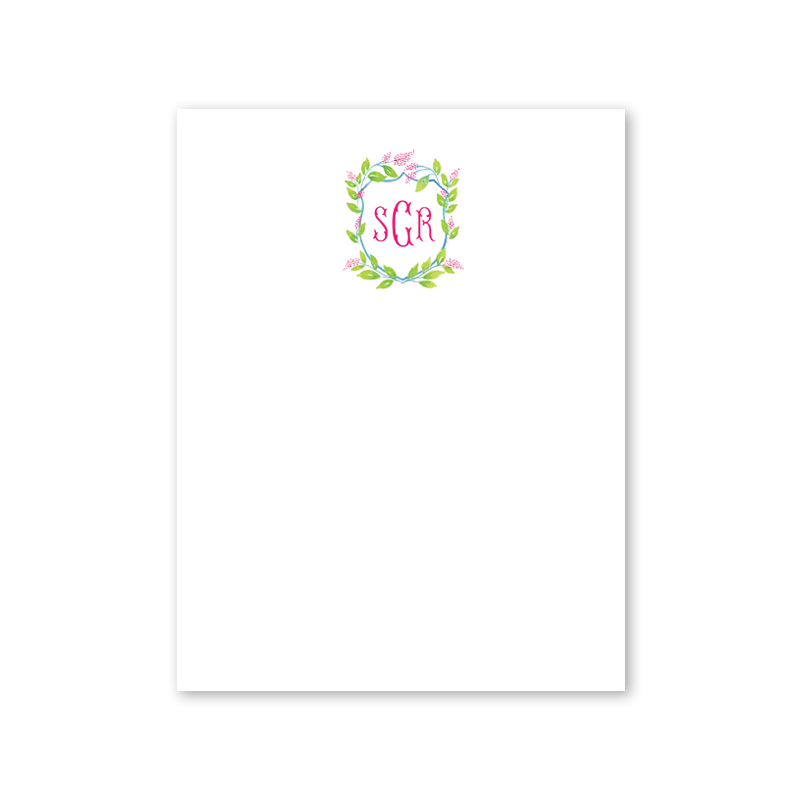 75 sheet personalized notepad sized 4.25 x 5.5 inches on 100 lb Mohawk Eggshell White Paper