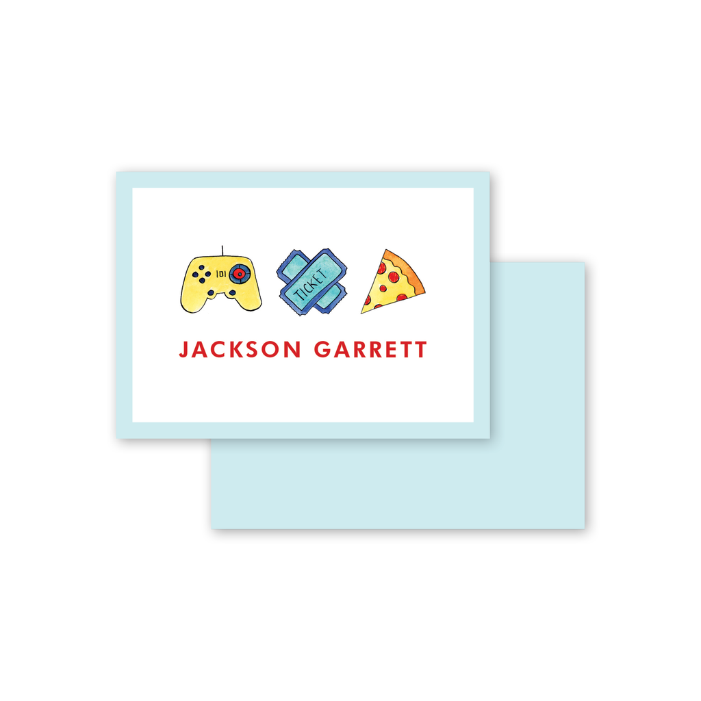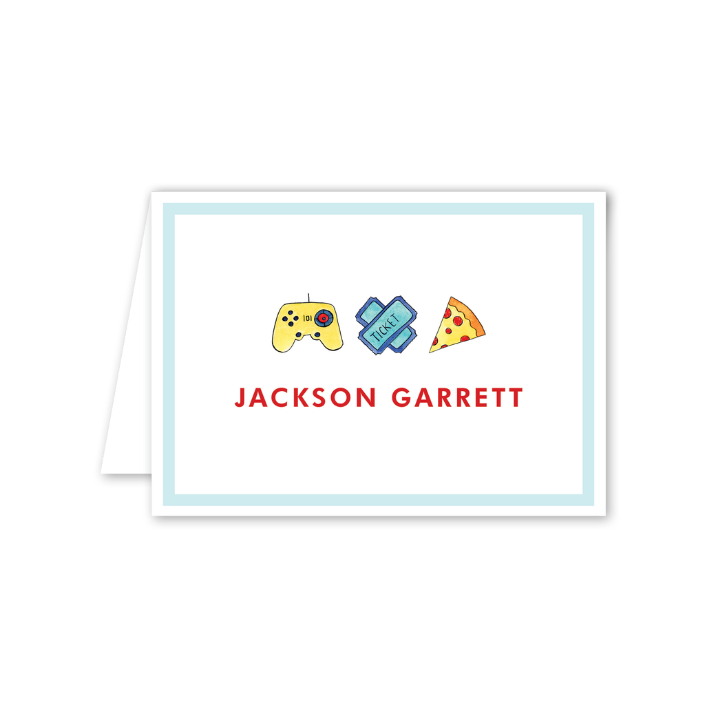 25 personalized notecards sized 3.5 x 4.875 inches folded on 120 lb Mohawk Eggshell White Paper