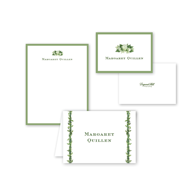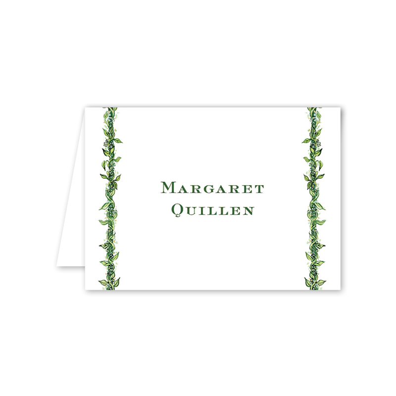 25 personalized notecards sized 3.5 x 4.875 inches folded on 120 lb Mohawk Eggshell White Paper
