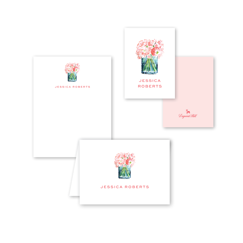 25 personalized notecards sized 3.5 x 4.875 inches folded on 120 lb Mohawk Eggshell White Paper