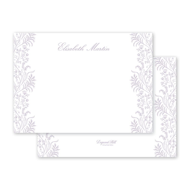 25 personalized notecards sized 4.5 x 6.25 inches on 120 lb Mohawk Eggshell White Paper