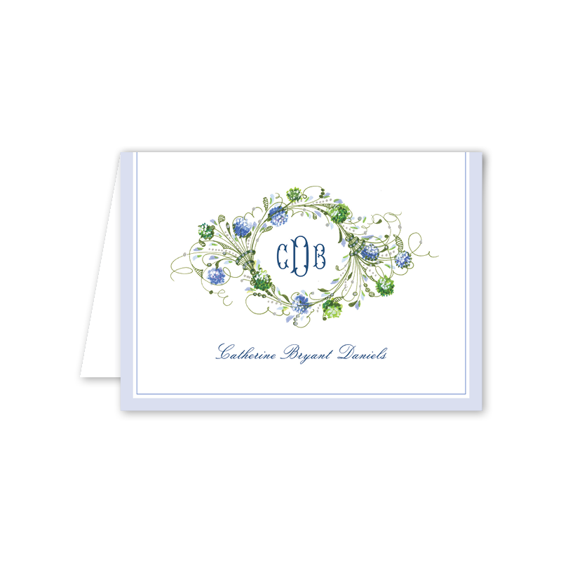 25 personalized notecards sized 3.5 x 4.875 inches folded on 120 lb Mohawk Eggshell White Paper