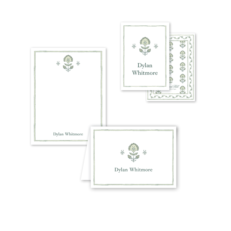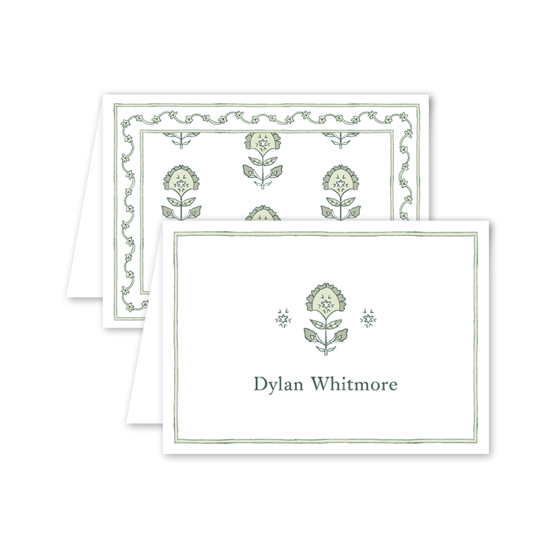 25 personalized notecards sized 3.5 x 4.875 inches folded on 120 lb Mohawk Eggshell White Paper