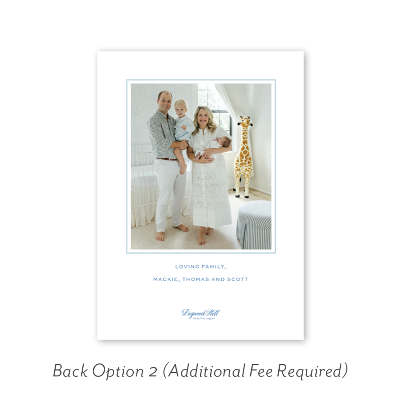 Want to add up to 4 photos on the back or inside of your card? Click here to add the fee to your cart.