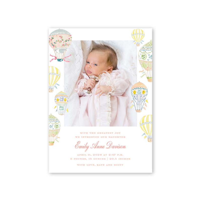 Balloon Festival Pink Birth Announcement