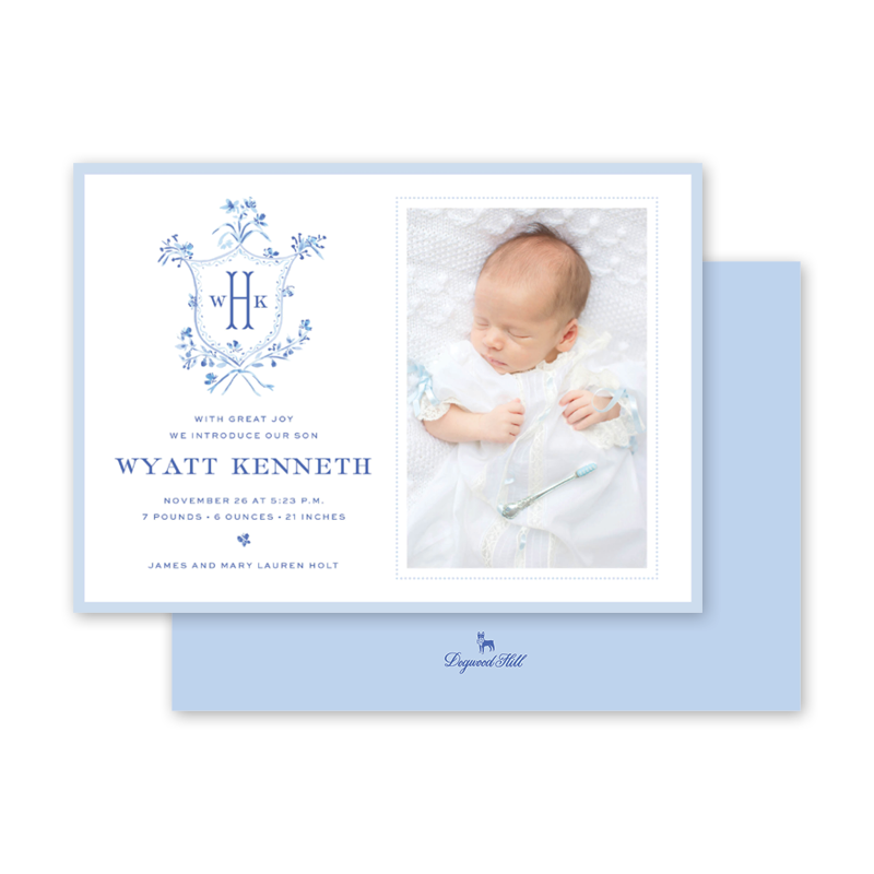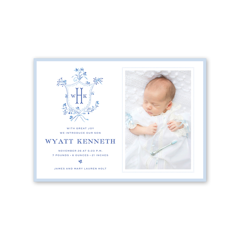 Heron Blue Landscape Birth Announcement