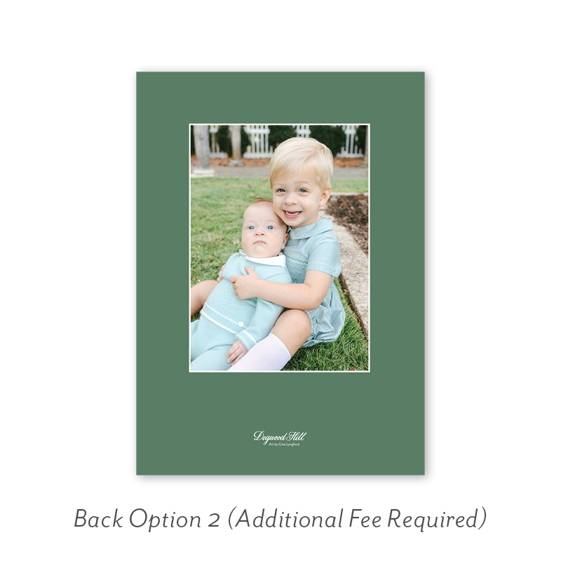 Select your order quantity from the dropdown menu below and check your total. Then click the Customize and Add to Cart button to create your card and add it to your cart.Want to add up to 4 photos on the back or inside of your card? Click here to add the fee to your cart.